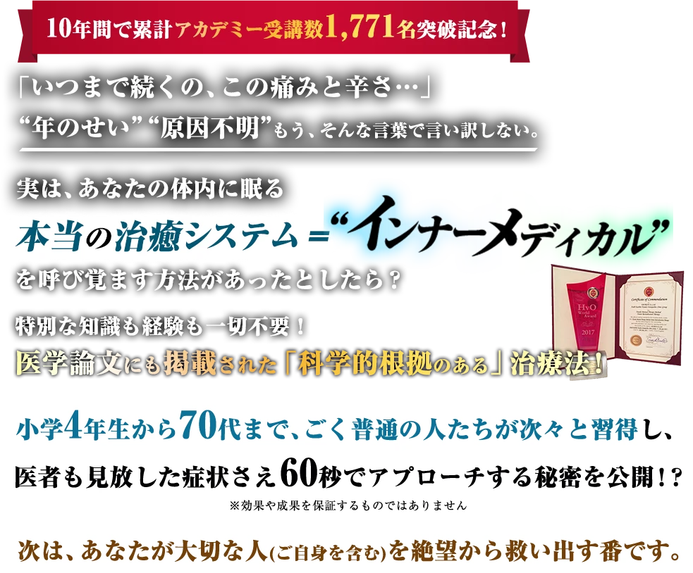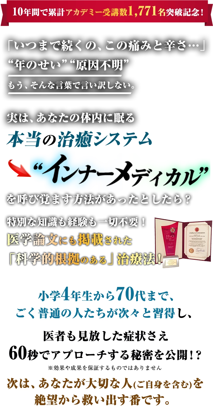 私たちの体内に眠る「内なる名医=インナーメディカル」を目覚めさせ、
